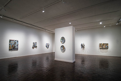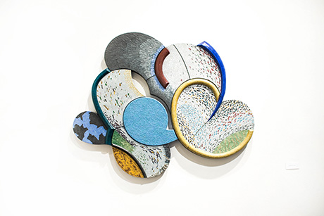 For four decades, Ken Vavrek has energized the walls of a room with his exceptional abstractions. Fullness, complexity, and vigor infuse his work. Vavrek’s carefully conceived compositions appeal to the intellect, but they also inspire awe for his prowess in handling clay and glazes at a large scale. Vavrek is the mastermind of his stoneware reliefs, but look more closely, and a feeling emerges that energies or forces, such as gravity or entropy, have also shaped his compositions. Vavrek’s forms and marks feel paused, but the forces associated with them feel insistent enough to effect change-gradually or perhaps in an instant. Feelings arise about what might happen next, and this anticipation adds emotional strength to Vavrek’s work. Vavrek groups his wall reliefs into three phases, which he has titled. He started his first phase, the Desert Series, after a trip to the Southwest desert in 1975. He wanted to express his emotional experiences about canyons, buttes, and rocks instead of sculpting what he had directly observed. (1) This work established his long-term commitment to creating large and unique sculptural reliefs. In 1995 he abruptly moved away from any vestige of representation and organized abstracted forms using basic rectilinear understructures. These Sculptural Abstractions balance asymmetry in different ways and have the highest relief of the three series. Vavrek gradually moved to the Pictorial Abstractions, his current phase, around 2008. These sectioned wall reliefs and platters differ significantly from the previous period because they use brush strokes and colors to energize surfaces that hardly lift from the wall.