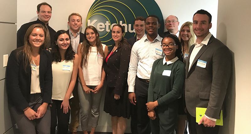Jordy already had some networking experience: Last year, the Career Center helped her get in touch with Doyle as she searched for internships. “I got a chance to have an informational phone call with him,” she says. “I actually used one of his pointers to help me land my summer internship,” at Gillian Small PR in Hoboken, N.J. After she signed up for the Ketchum visit, Jordy sent Doyle an email, reminding him of their previous conversation and letting him know she was looking forward to meeting him in person.