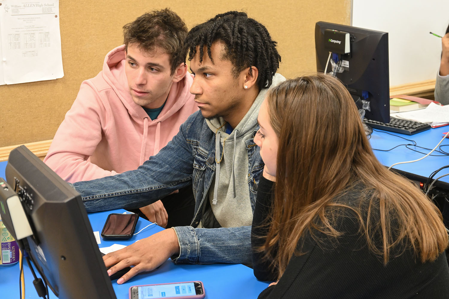 On a Wednesday afternoon in October at Allentown’s William Allen High School, seniors trickle into a third-floor computer lab. They’re here for Muhlenberg’s College Admissions Mentoring Program (CAMP), and their 15 Mule mentors sit waiting for them. For the next 50 minutes, the Allen-Muhlenberg student pairs will work on admissions essays, or the Common App, or one of the many forms required to get into college or to secure the financial aid necessary to attend.