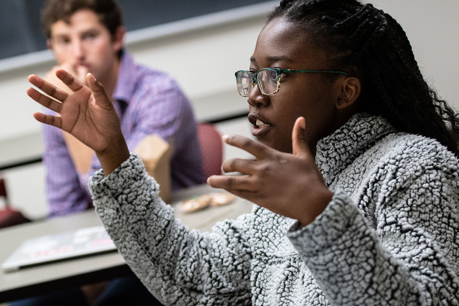 Grace Duah '20 participates in a class session at Muhlenberg. (Photo by Ryan Hulvat)
