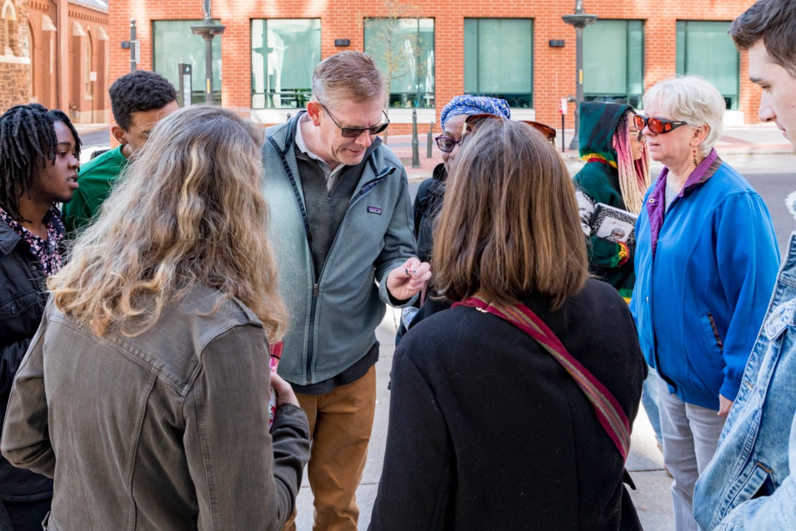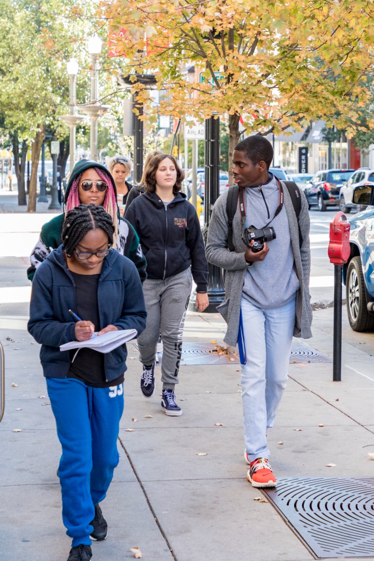 Students from local high schools join Muhlenberg faculty and undergraduates on the hunt for spotted lanternflies in downtown Allentown.