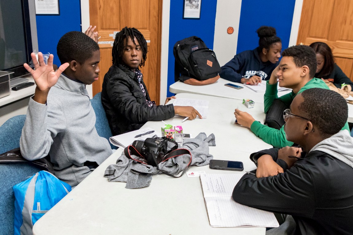 Local high school students meet on Muhlenberg's campus to plan the day's research project.