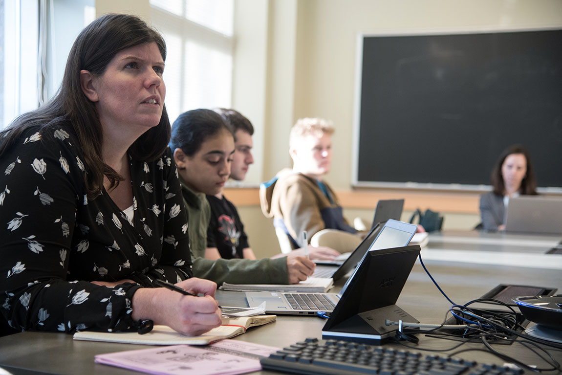 Teaching and Learning Librarian Rachel Hamelers (left) leads a discussion in her Scientific Communication integrative learning course. Photo by Tom AmicoBefore this semester, Maddie Taradash ’21, a business administration and media & communication double major, had a clear sense of what professors thought of one popular website: “I was always told that Wikipedia was the anti-source,” she says. It’s easy to see why—anyone can update Wikipedia, and it’s vetted by a team of volunteer editors who may or may not catch mistakes or lies introduced into one of the site’s millions of articles.