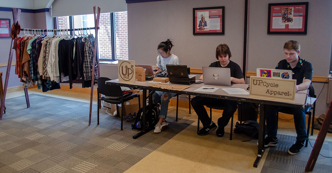 Curtis says the UPCycle Apparel group is weighing how they might proceed. Options they’ve discussed include finding a permanent space on campus, expanding their reach to include events at other schools and considering how they might turn clothing that doesn’t sell into something useful. These discussions are all inspired by the experiences they’ve had as they actually launched the business this semester.