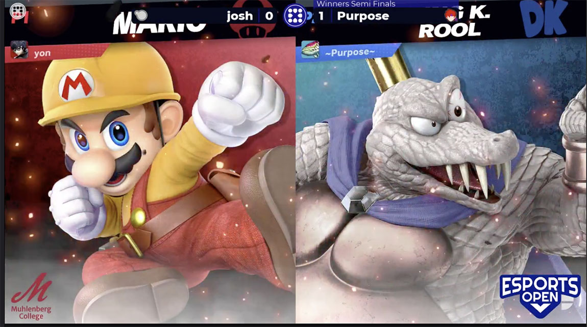 A screenshot from a Super Smash Bros tournament Muhlenberg set up for students