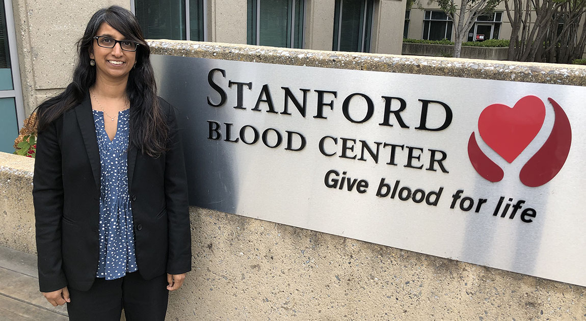 Dr. Suchi Pandey ’99 stands in front of Stanford Blood Center, where she serves as chief medical officer. Photos courtesy of Ross Coyle/Stanford Blood CenterIn her role as chief medical officer for Stanford Blood Center in California, Dr. Suchi Pandey ’99 must ensure that the blood the Center collects is safe for transfusion patients to receive. When COVID-19 first emerged early this year, her first concern was, “Could this novel coronavirus be bloodborne?” (Fortunately, there has been no evidence that COVID-19 can be transmitted through transfusion.) Her next concern was ensuring the safety of donors and staff at a time when personal protective equipment shortages were making headlines. Then, she quickly took on the responsibility of building the Center’s convalescent plasma program.