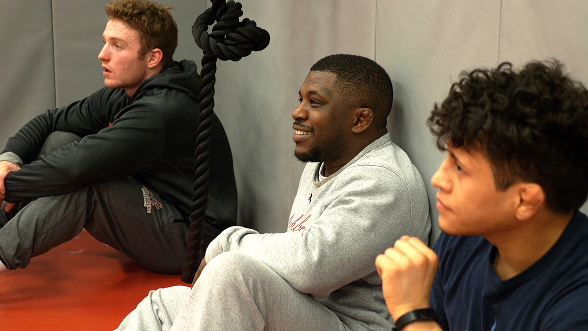 Jason McLean ’01 (center) is in his third season as Muhlenberg's head wrestling coach.Jason McLean ’01 never wanted to coach. He knew how much it would take out of him, how it would consume him, how he would obsess over every detail.