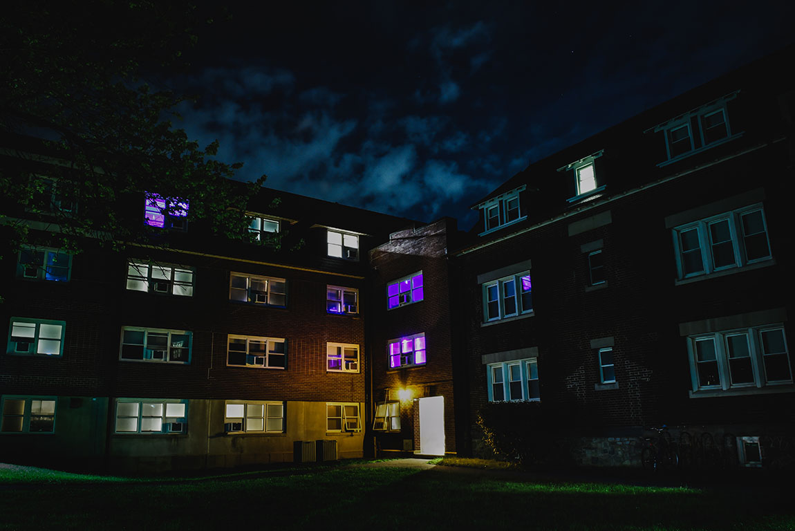 Instead of a candle-lighting ceremony at the start of the Fall 2020 semester, the Class of 2024 displayed glow sticks in the windows of their residence hall rooms to comply with health and safety guidance at the time. The class will get its own belated candle-lighting ceremony at the start of this academic year. Photo by Kristi Morris of Littlewing PhotographyWhen Muhlenberg’s Class of 2024 came to campus last fall, they moved into their rooms and more or less stayed there. Instead of exploring campus during welcome weekend—learning, socializing and participating in Muhlenberg traditions—the bulk of that programming was offered virtually, if at all.