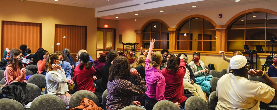 During her interactive presentation at Muhlenberg, “Discussing Intersectional Advocacy and Activism,” which was hosted by the Africana Studies Program, Hikes asked students, faculty and staff to think about an advocacy issue that needs addressing or an activism project they want to get started on. Attendees scrawled their ideas on pieces of paper, crumpled them up and then had a “snowball fight,” batting the scraps around until they were thoroughly mixed. Everyone grabbed a paper, sorted themselves into teams of four and read the ideas to each other, looking for themes and offering up advice and current resources to address the issues.