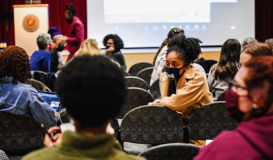 Hikes then led the group in a self-reflection exercise called KISS, which focused on individual responsibility and accountability. Participants wrote down their intentions in four categories: those they wanted to keep (one example, “reaching out to people who are different than me”), increase (“environmental justice work”), start (“being more assertive and really speaking my truth”) and stop (“saying that I can’t do something or don’t belong because of my Blackness”).