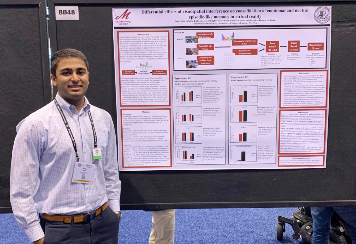 “I've been fortunate enough to learn the joys of research and discovery in their labs. Muhlenberg, in particular, gave me the chance to conduct research as early as my freshman year, and I jumped on that opportunity,” says Shah, a public health and neuroscience major. “I joined the Gotthard Lab, which focuses on behavioral neuroscience, and traveled with fellow students to present our research findings at an annual international conference in Chicago.”