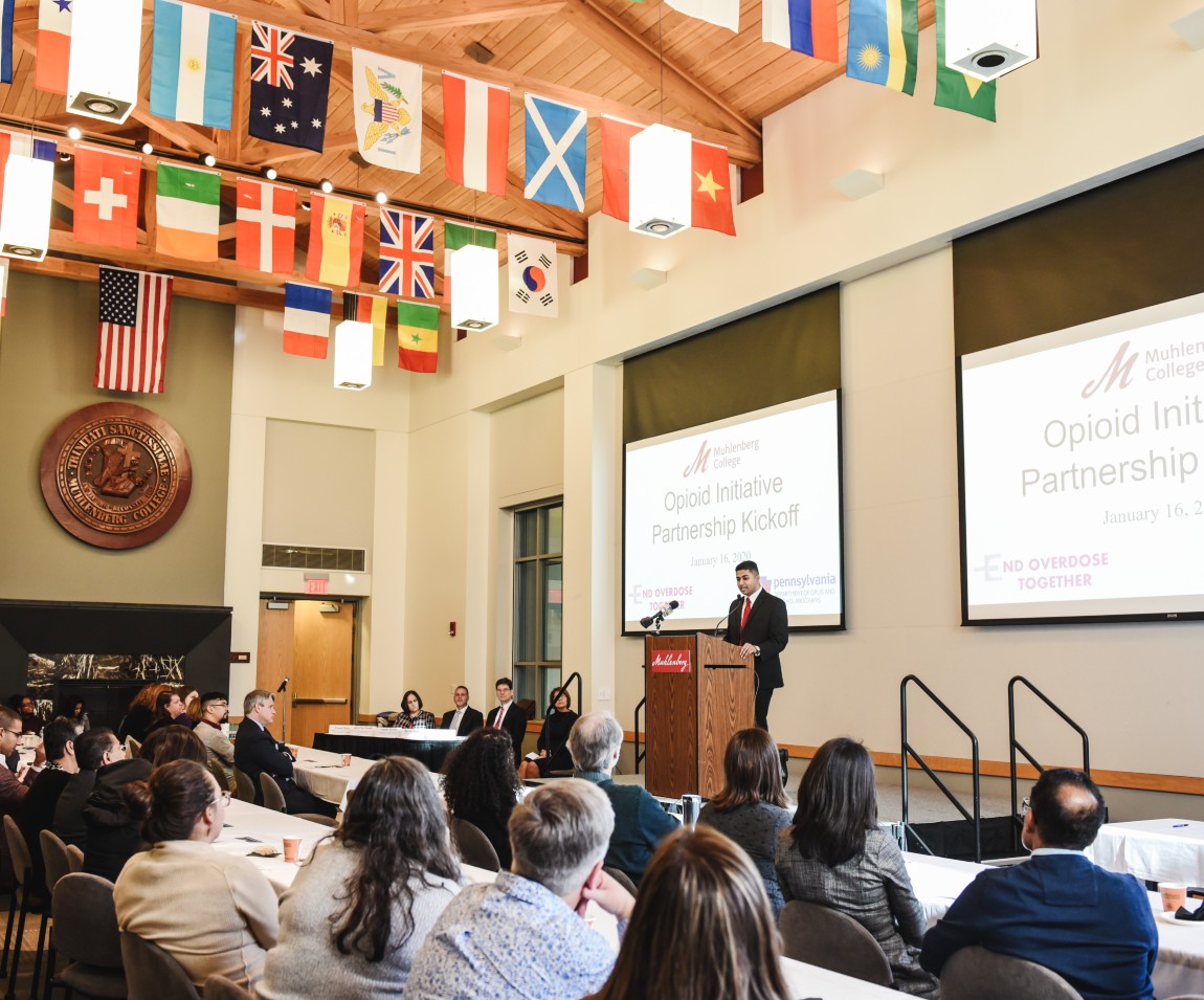 Shah helped announce Muhlenberg's Opioid Prevention in Higher Education Grant to the community and the media in January 2020.Kevan Shah ‘22, a public health and neuroscience major, will join 212 students from 39 states, Washington, D.C. and Mexico to form the 2021 cohort of the Newman Civic Fellows. The Newman Civic Fellowship is a year-long program for students from Campus Compact member institutions.