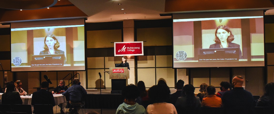 Muhlenberg CtF board members Anna-Maria Hadadd '25, Melanie Halbert '25, Leia Resnick '23 and Arielle Weinberger '21 helped organize the symposium and introduced each speaker.