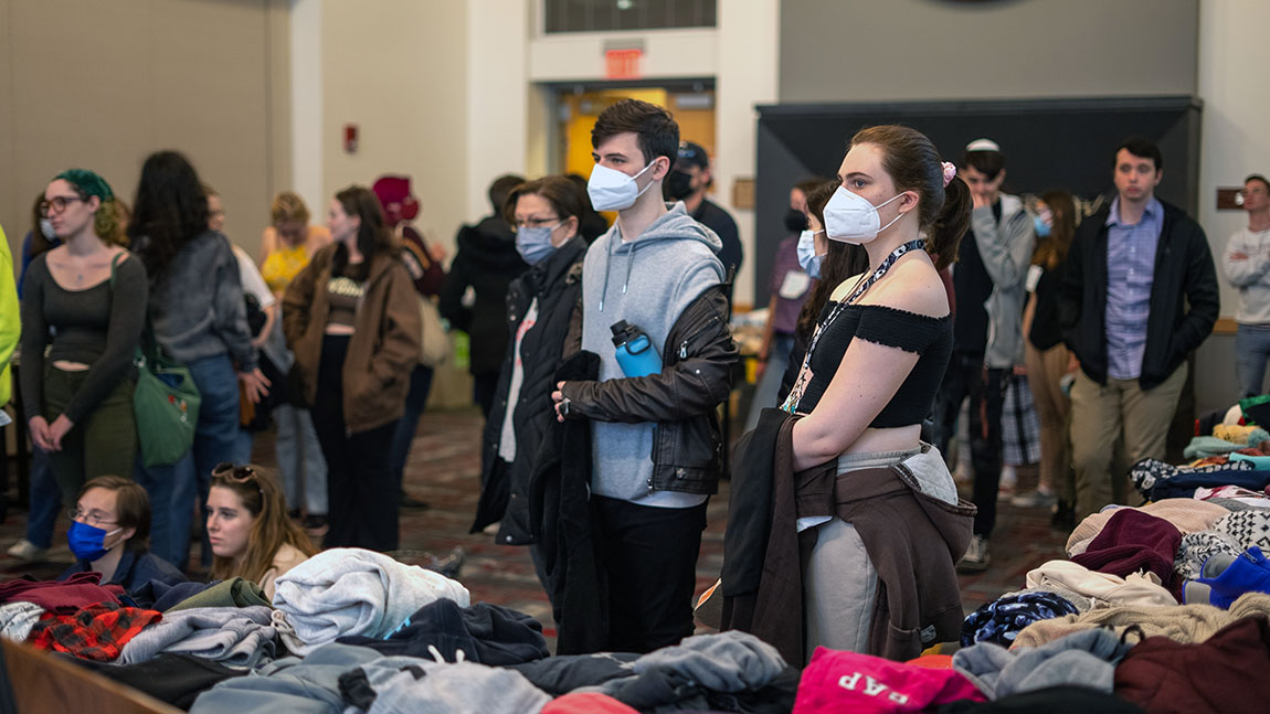 Students at enACT's second clothing swap of the semester on April 2. Photos by Anaya Battle ’22Next to her breakfast plate in the Wood Dining Commons, Maddie Davidson ’25 has a notebook. Inside this notebook are lists of ideas; she says she has a very “scattered, spontaneous brain.”