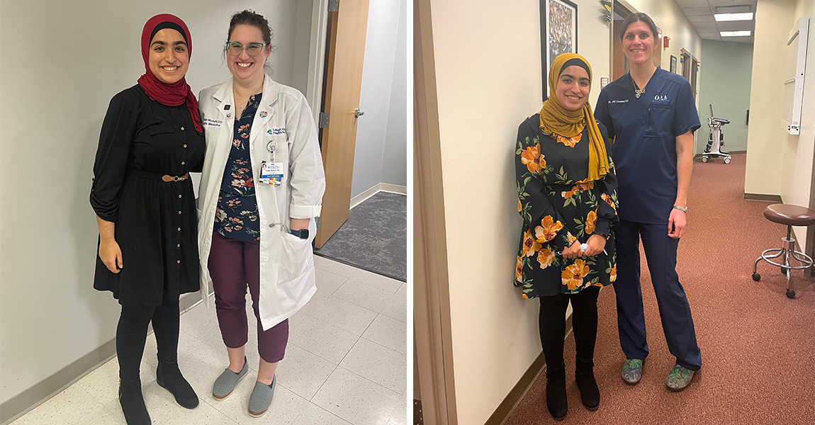 Anam Ali ’25 (pictured above), a prehealth biochemistry and Spanish double major, completed externships with Family Medicine and Obstetrics Physician at Lehigh Valley Health Network-Schuylkill County Dr. Susan Medalie ’10 and Sports Medicine Physician at OAA Orthopaedic Specialists Dr. Jill Crosson ’04.