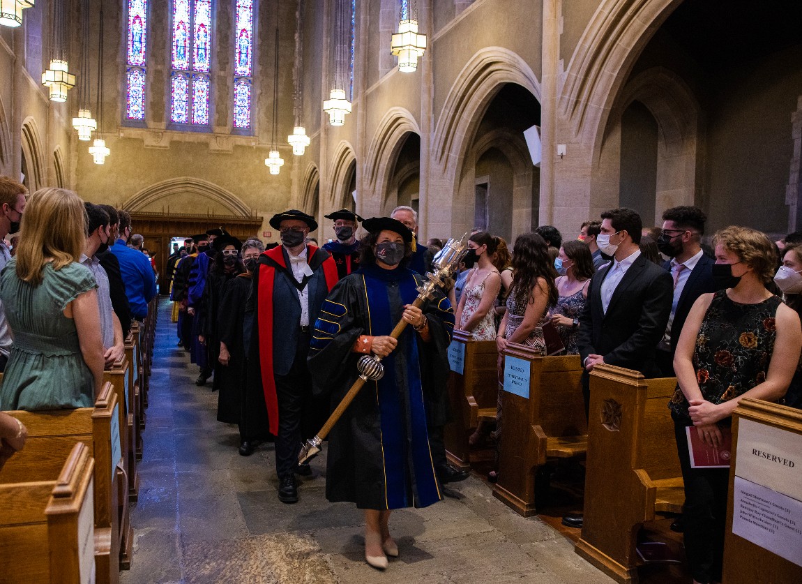 Faculty and staff process into Muhlenberg's beautiful Egner Chapel at the start of the 2022 Honors Convocation.