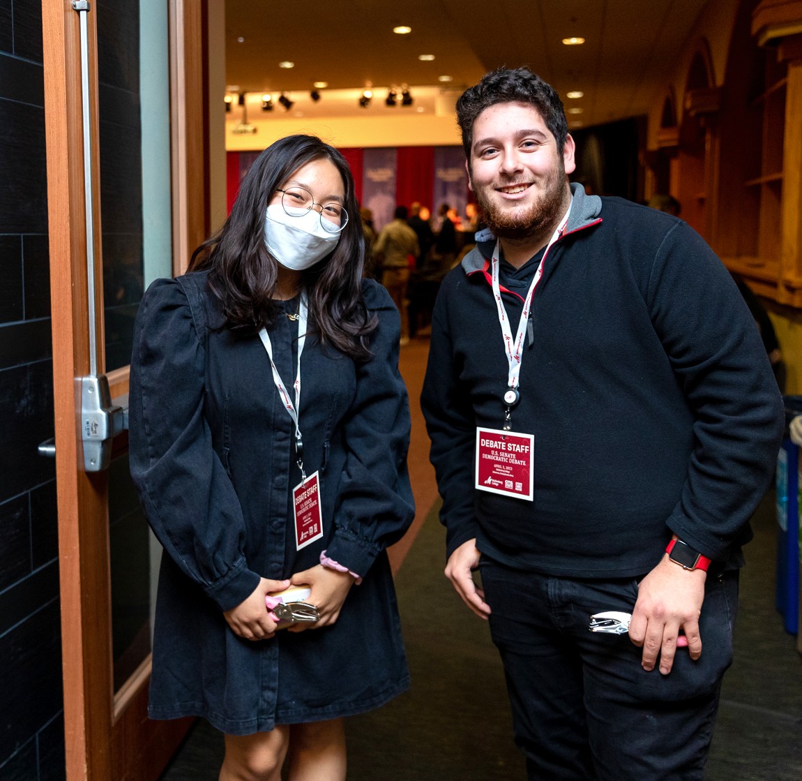 AJ Henley '24, president of the College Democrats, opened the debate by reminding the audience that the war in Ukraine is a powerful reminder that democracy and the ability to cast an educated vote should never be taken for granted.