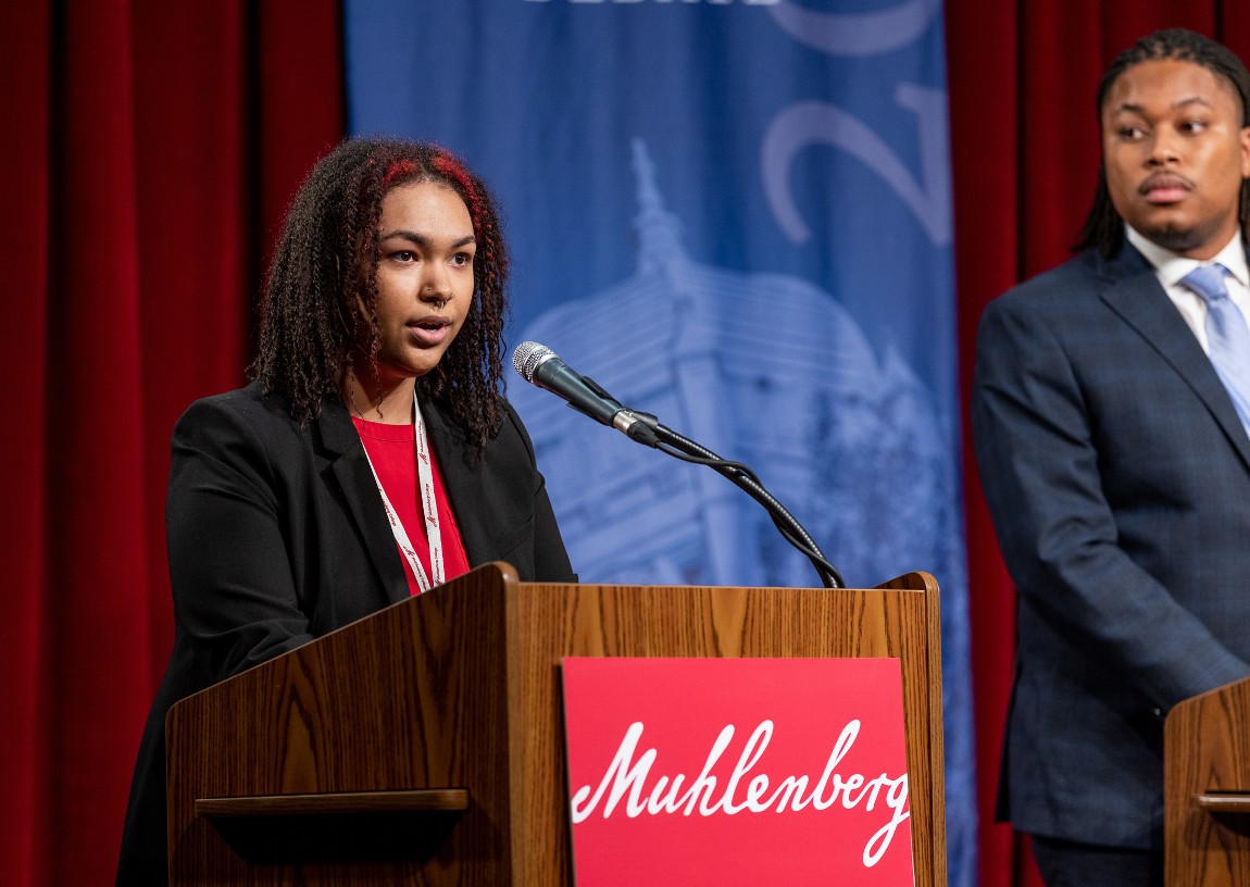 AJ Henley '24, president of the Muhlenberg College Democrats, opened the debate.