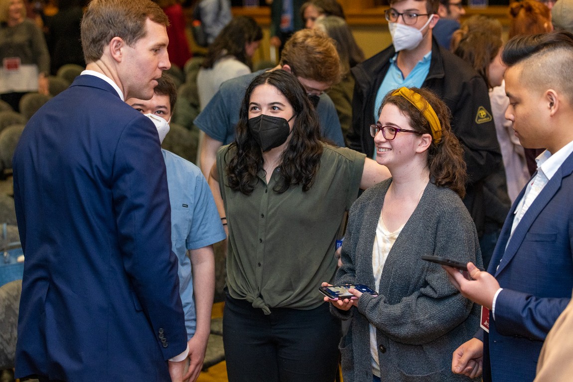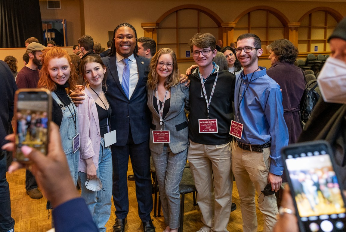 Pennsylvania State Representative Malcolm Kenyatta with students after the debate.