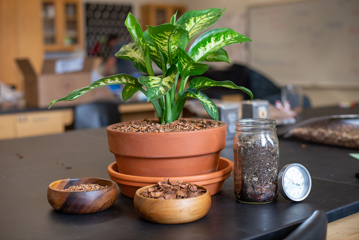 He and Hernandez went to the store to learn about the potential audience for Nuts About Plants, a concept they were developing as part of The Seedbox, a six-week summer program funded in part by a three-year, $30,000 VentureWell grant. The grant is focused on integrating innovation & entrepreneurship and sustainability studies to support students in their development of real-world business solutions to environmental and social problems. With support from the Lemelson Foundation, VentureWell awarded the grant last year to Director of Innovation & Entrepreneurship Rita Chesterton and Professor of Biology, Director of Sustainability Studies and Rita and Joseph B. Scheller Chair Rich Niesenbaum.