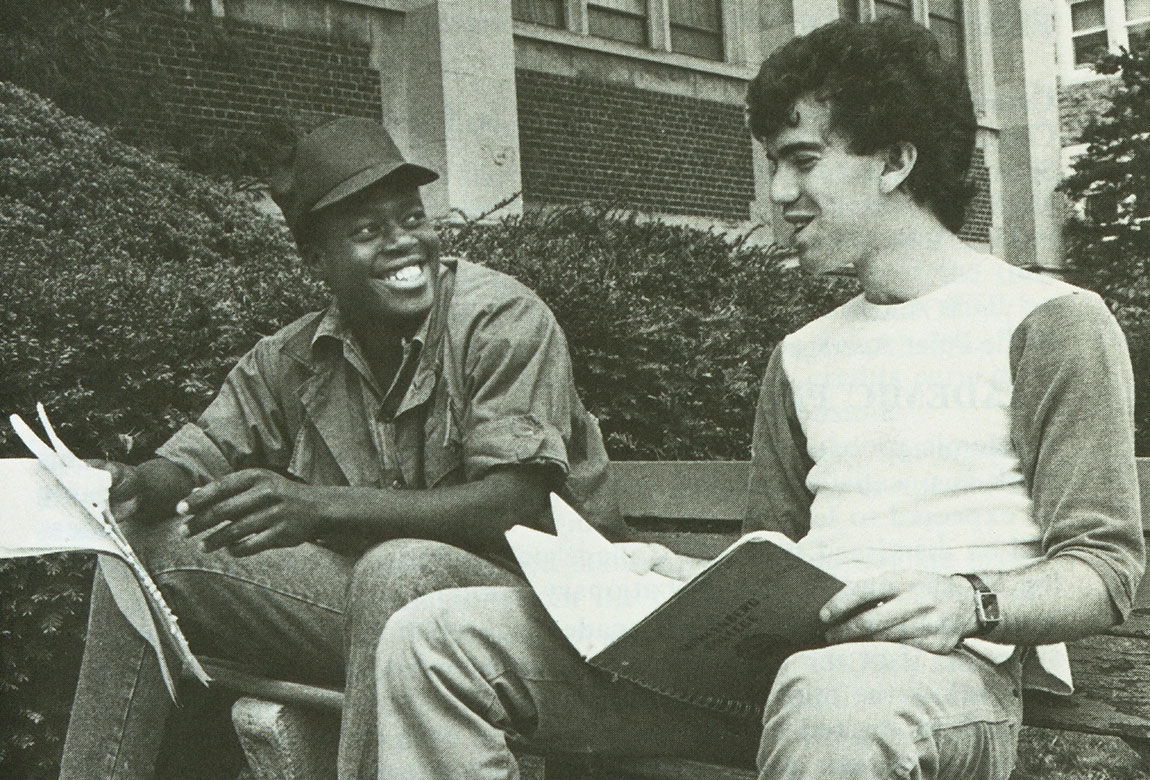 Harold Hillman ’77 (in blue) was one of the alumni interviewed for a project exploring Black history at Muhlenberg. Last spring, Hailey Petrus ’23 and Samantha Brenner ’21 conducted independent research to help create Toward Diversity, a site that chronicles the history of the Black community at Muhlenberg. The students each got to choose what they’d like to focus on. Petrus found herself drawn toward the parallels between Black student experiences in the past and those of today. For example, in 1971, Black students asked for a Black residential house, a request that the president at the time denied. This academic year, the Black Students Association (BSA) finally got one.