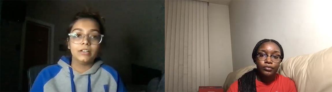 Petrus (right) interviewed two current students, including Veda Bridgelal ’24 (left), as part of the project.