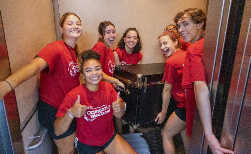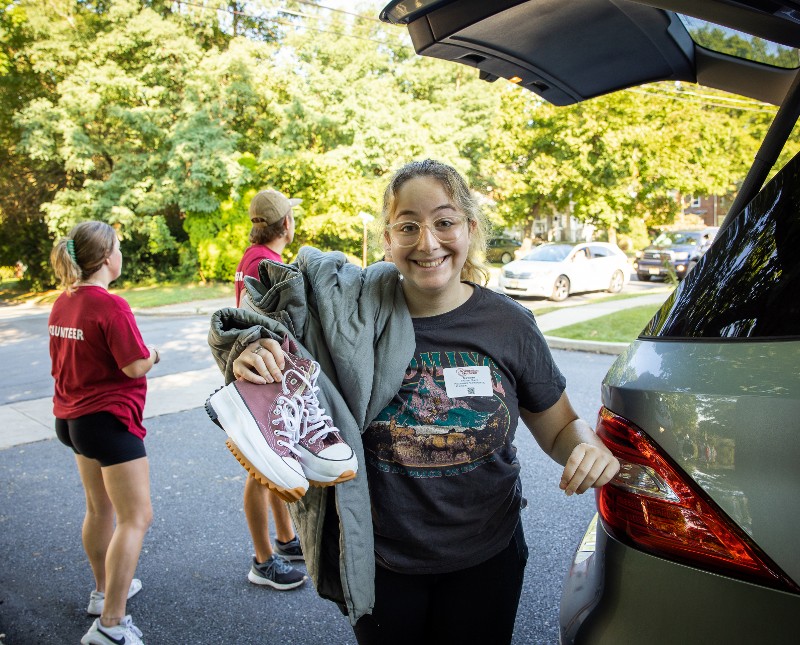 Move in and orientation began for first-year students on Thursday, August 25. Student teams helped carry boxes and bins to residence hall rooms, the College’s Green Team oversaw recycling efforts and President Harring welcomed new arrivals and their families.