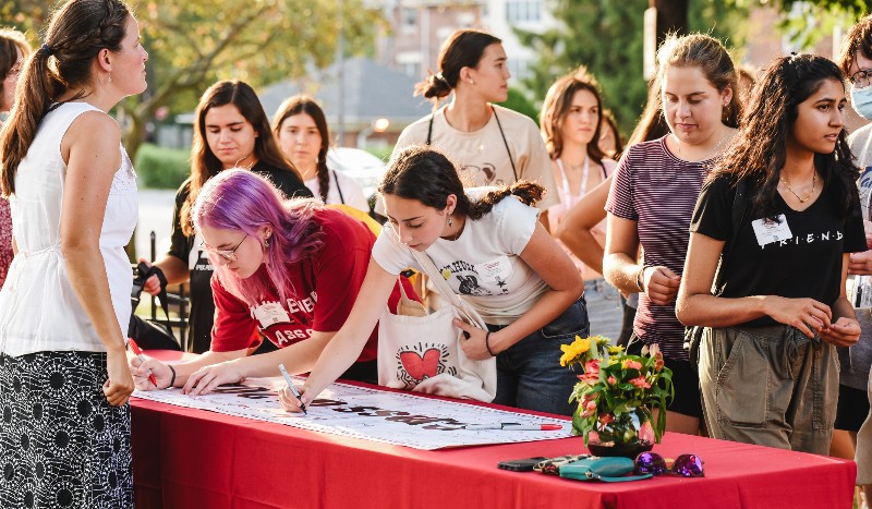 Events throughout the weekend included information sessions with Orientation Leaders; social gatherings for new students; a celebration of Muhlenberg’s traditions, including the signing of the matriculation ledger at the President's House, a candle-lighting ceremony and learning the College's Alma Mater; and a faculty welcome and first lecture.