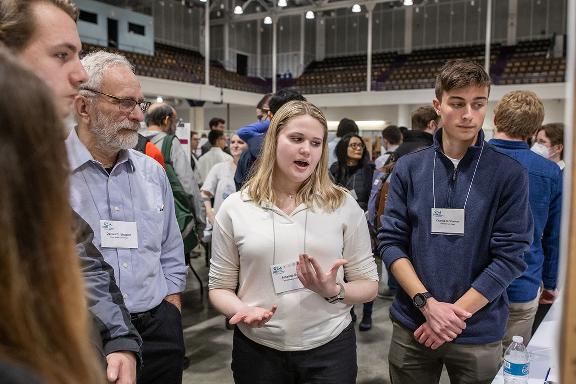 Amanda Sodl ’23 (center) presenting at the Joint Mathematics Meetings in Boston in January. Photos by Sam “Jobey” LeeIn her first semester at Muhlenberg, Amanda Sodl ’23 made connections in class that led to a transformative research opportunity — and the chance to present at the world’s largest mathematics conference.