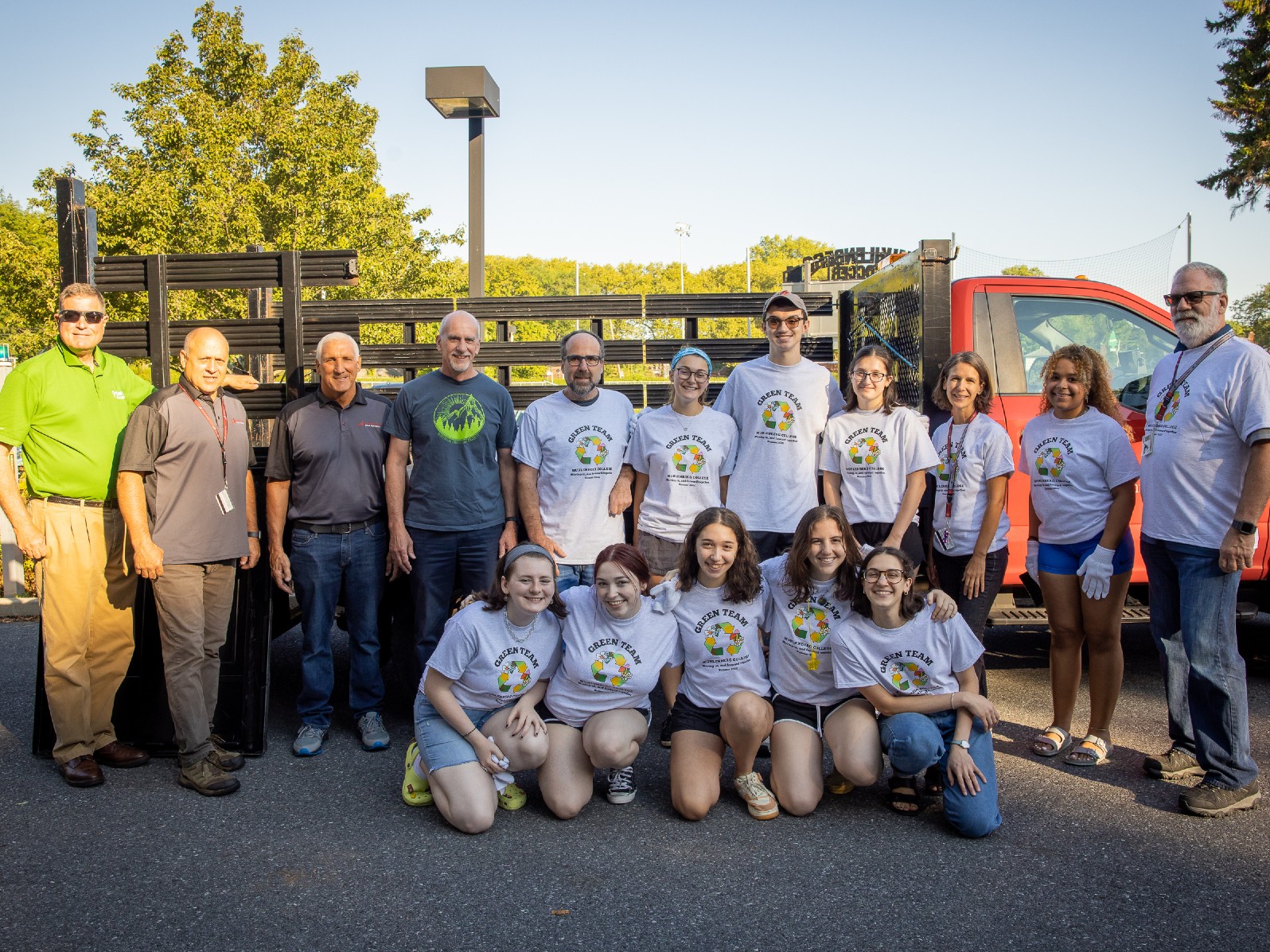 Each fall, the Green Team assists first-year students and families on Move-In Day. Comprised of student, faculty and staff volunteers, the team recycles cardboard boxes and styrofoam, provides orientation outreach, and answers questions about recycling, waste disposal, Just Tap It and campus sustainability.