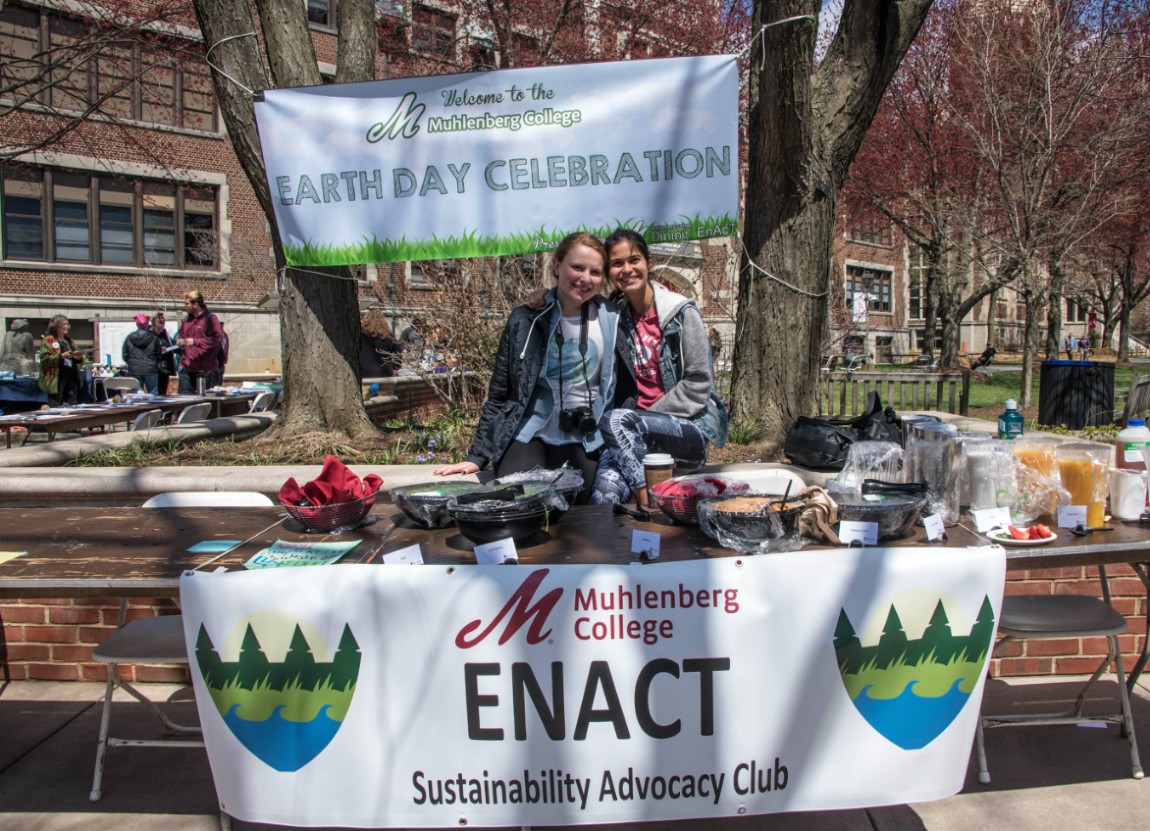 Each year Muhlenberg students collaborate with community groups to celebrate Earth Day. Organizations across disciplines join forces to raise awareness about environmental important issues and how individuals can make a difference. The celebration features student and local artists, sustainable food vendors, performance groups and activists who all showcase the intersectionality of sustainability. Free activities have included an aloe plant give away (enACT, MHPA), free seed bombs (Garden Club) and delicious vegetarian fare from the Dining Hall, handcrafted local artwork, demonstrations of an electric bike and solar-powered grill and the always popular human-powered smoothie bike (PBA). The whole event is planned by the Earth Day Planning Committee.